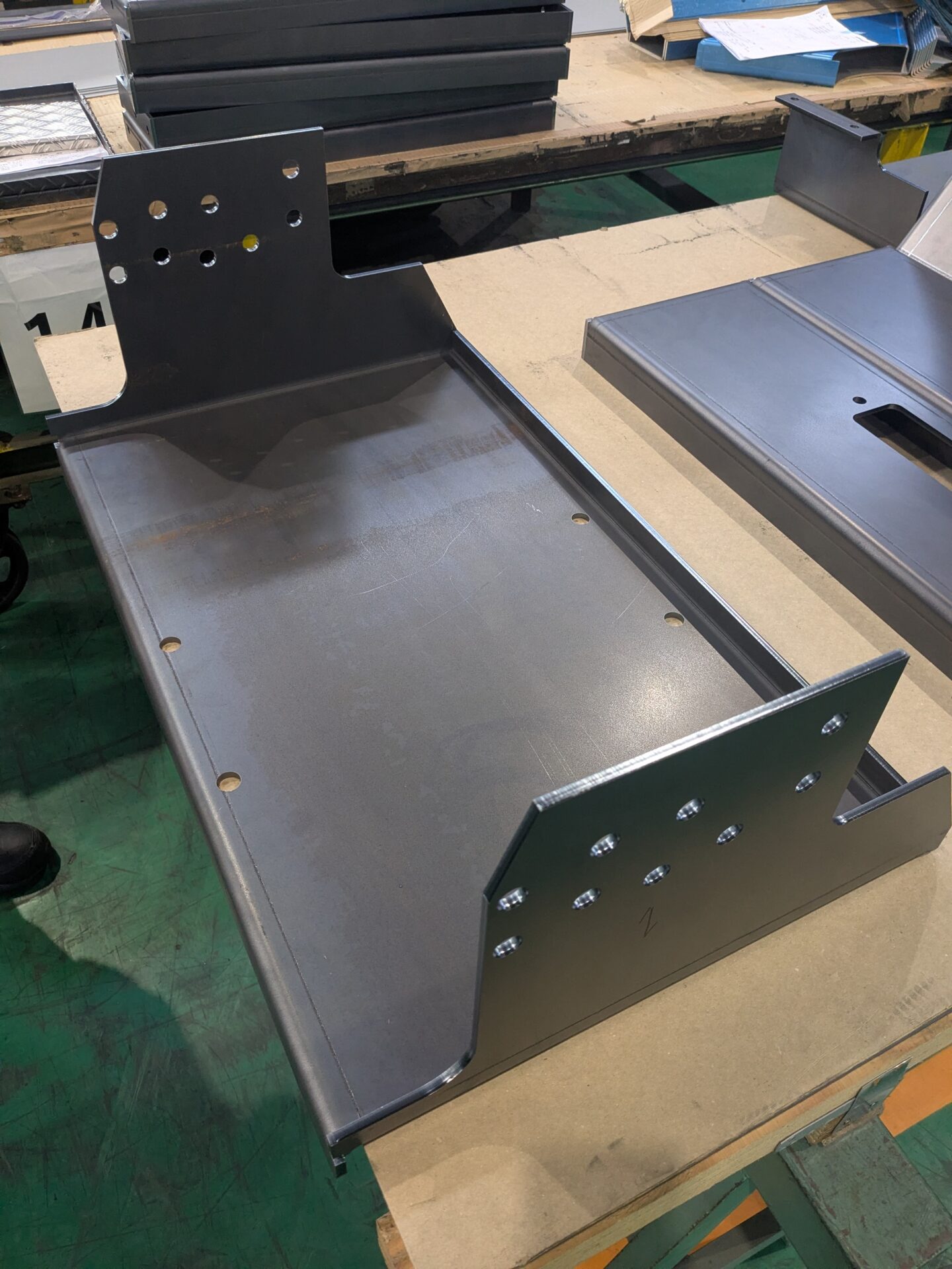 リョーユウ工業では、主にシャーリング(切断)加工、タレットパンチ加工、プレーナー加工、レーザー加工、曲げ加工、面取り加工、溶接加工を行っています。塗装に関しても協力会社を通じて対応することが可能です。