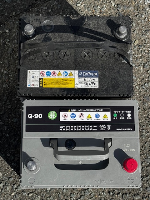 画像は弊社営業車の新旧バッテリー。