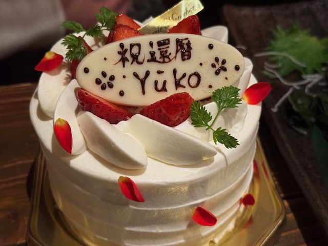 そして幹事のサプライズ演出で、弊社常務の還暦をお祝いしました。