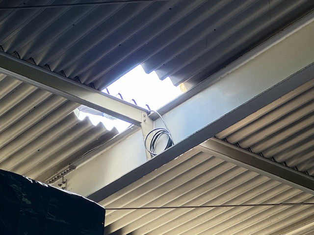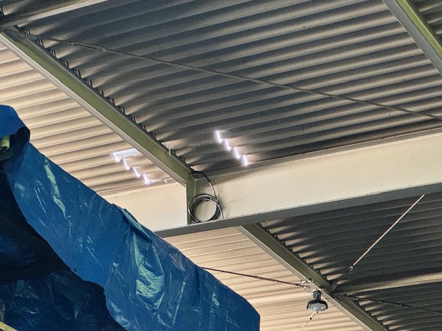 工場内から穴あけの様子を撮るとこんな感じ。