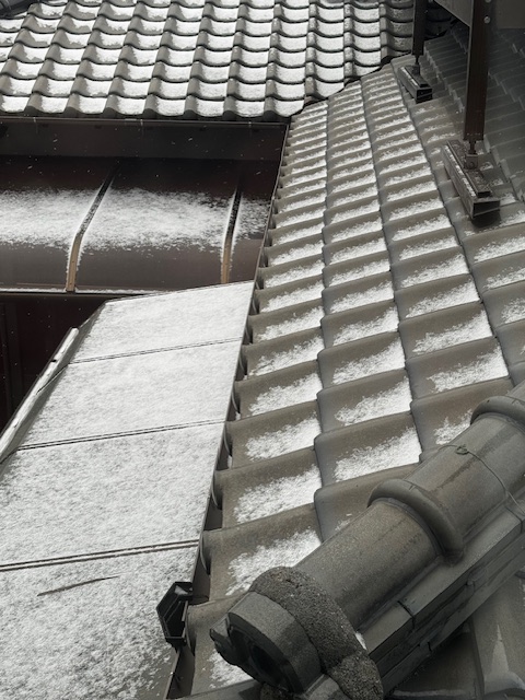 一方で昨日は目覚めると、隣家の屋根には雪がうっすらと積もっておりました。