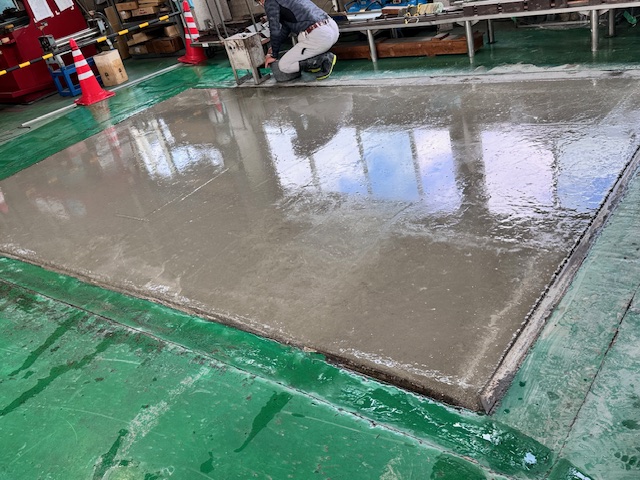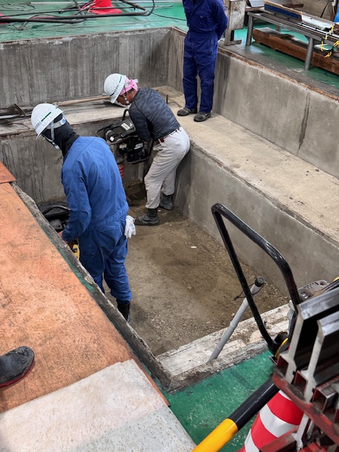 社内では撤去したベンダーのピット(穴)を埋める工事が始まりました。