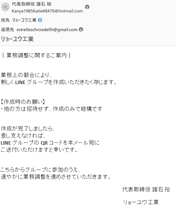 最近世間を騒がせている社長名で届く迷惑メールが弊社にも届きましたよ(笑)