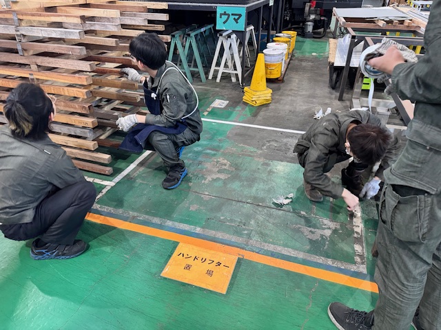 さて、先週土曜日は年に数回ある出勤日でして、朝から少し作業をした後に社内清掃&ライン引きを行いました。