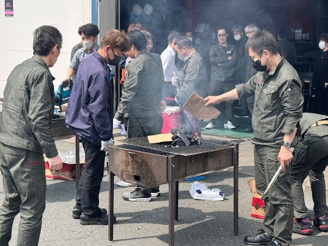 火起こし~肉を焼くのも上司の役目となっておりました。
