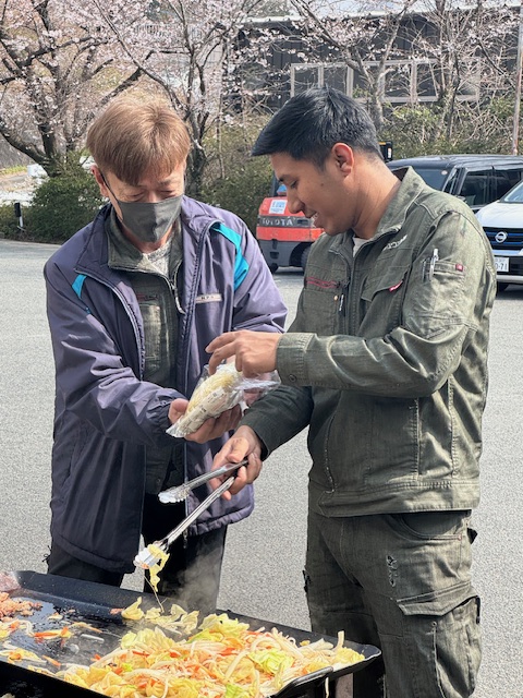 前回ブログに書いた委員会報告会のあと、敷地内でお花見という名のBBQを開催。