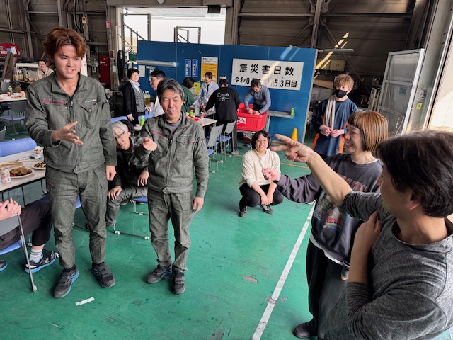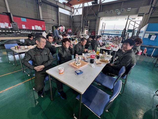 ゲームなどの余興を挟んで、余った食材をジャンケンで奪い合う社員たち・・・(汗)