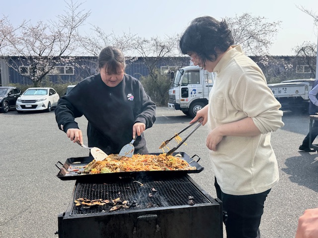 前回ブログに書いた委員会報告会のあと、敷地内でお花見という名のBBQを開催。