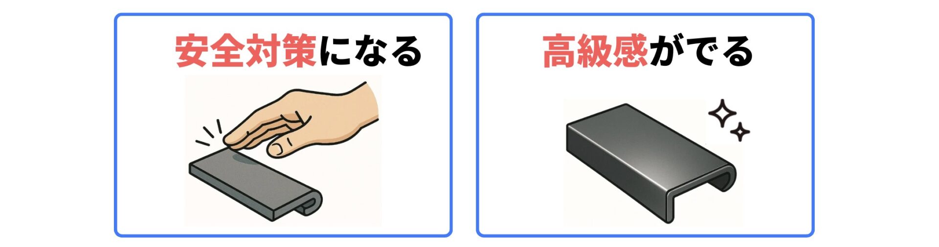 家電製品の操作パネルや、ステンレス製の家具の角などは、私たちが日常的に手を触れる機会が多く、ちょっとした不注意で指先を切ってしまうリスクがあります。鋭利なエッジがそのまま残っていると、ユーザーに不安を与えてしまいます。