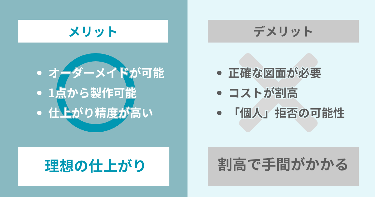 業者によっては法人以外受け付けていなかったり、対応できる材質や加工範囲に制限があることもあります。依頼前には対応可否や納期、費用などをしっかり確認することが重要です。