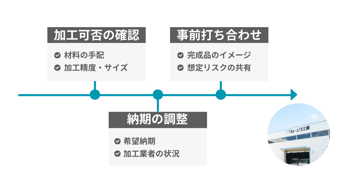 トラブルを未然に防ぐため、まずは「この内容で加工できるか」を気軽に相談してみるといいでしょう。