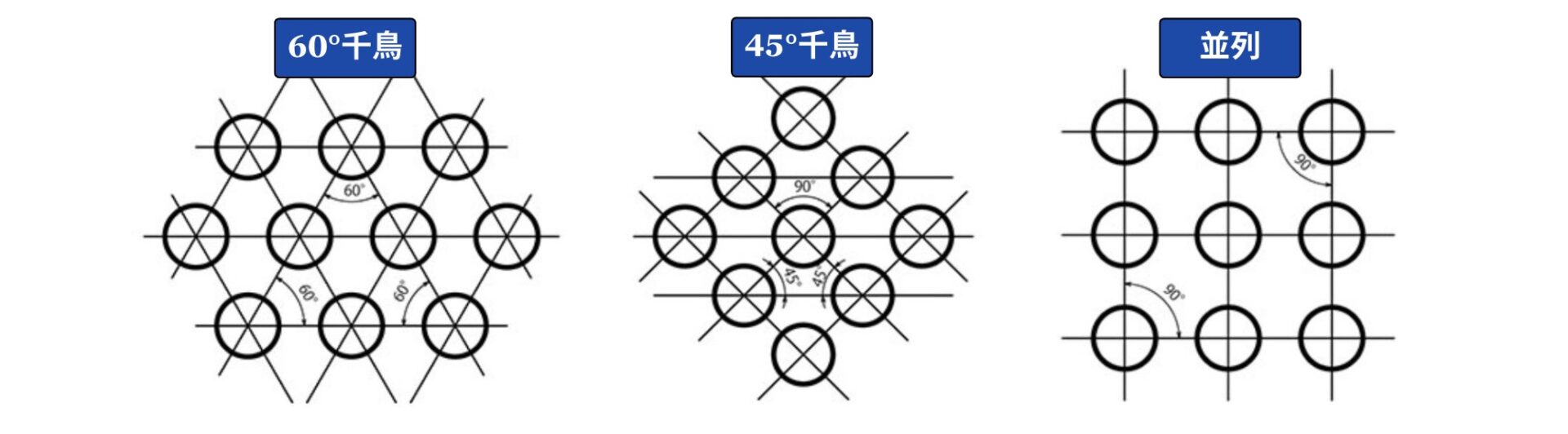穴の配列(60°千鳥・45°千鳥・並列・特殊配列)